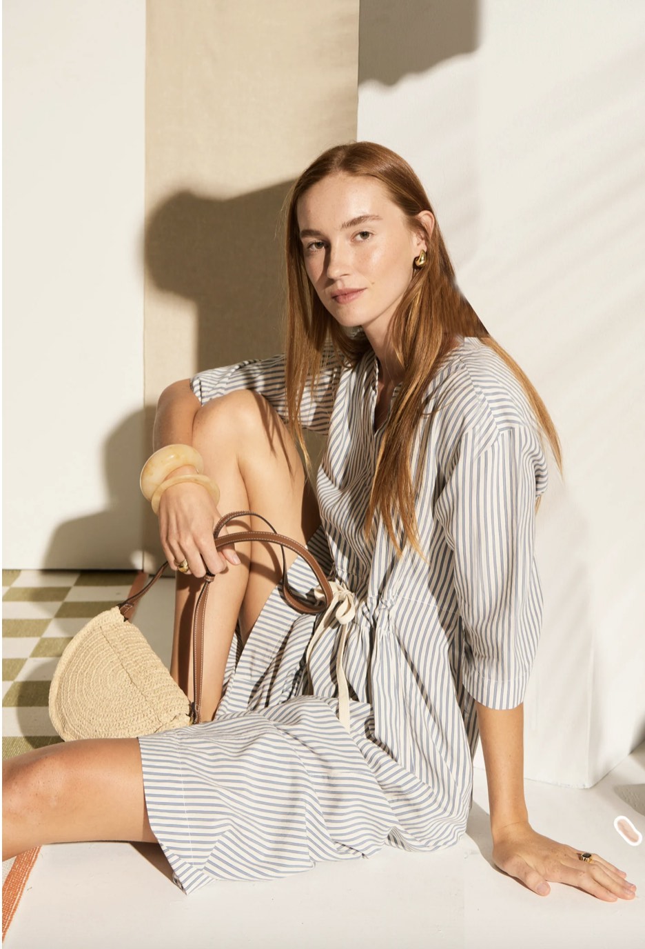 The Vera Shirt Dress features a favourite POL silhouette in a beautiful light blue pinstripe.