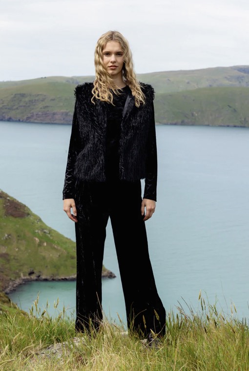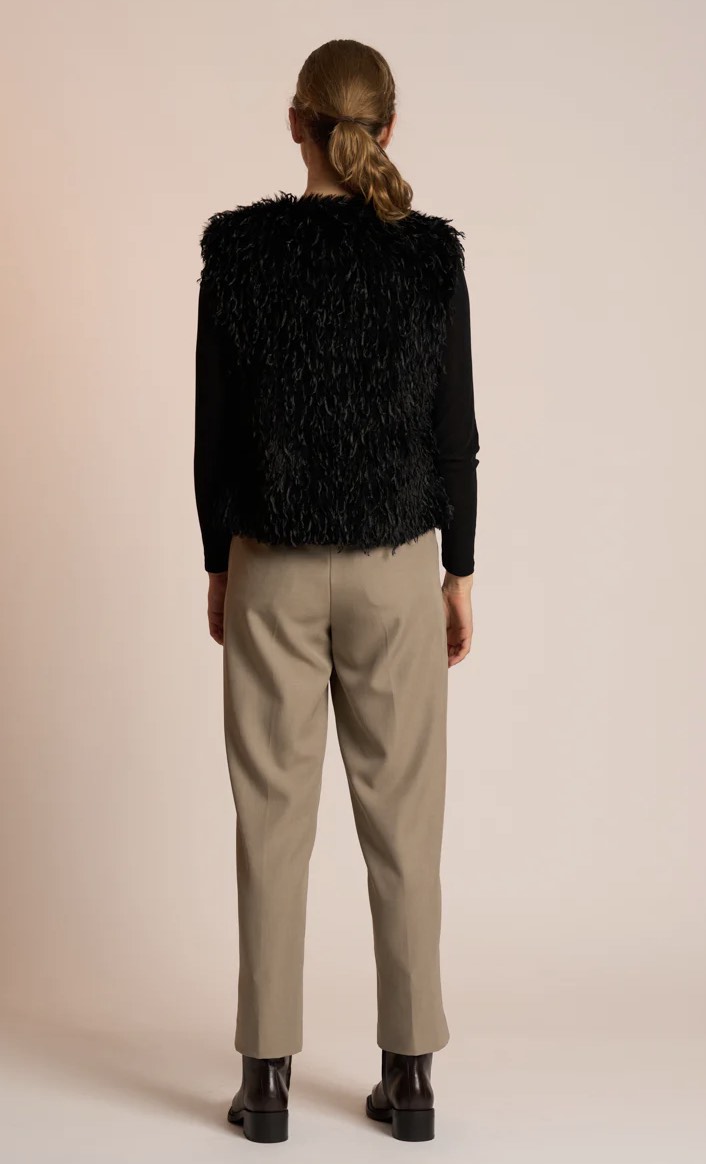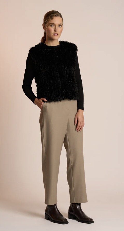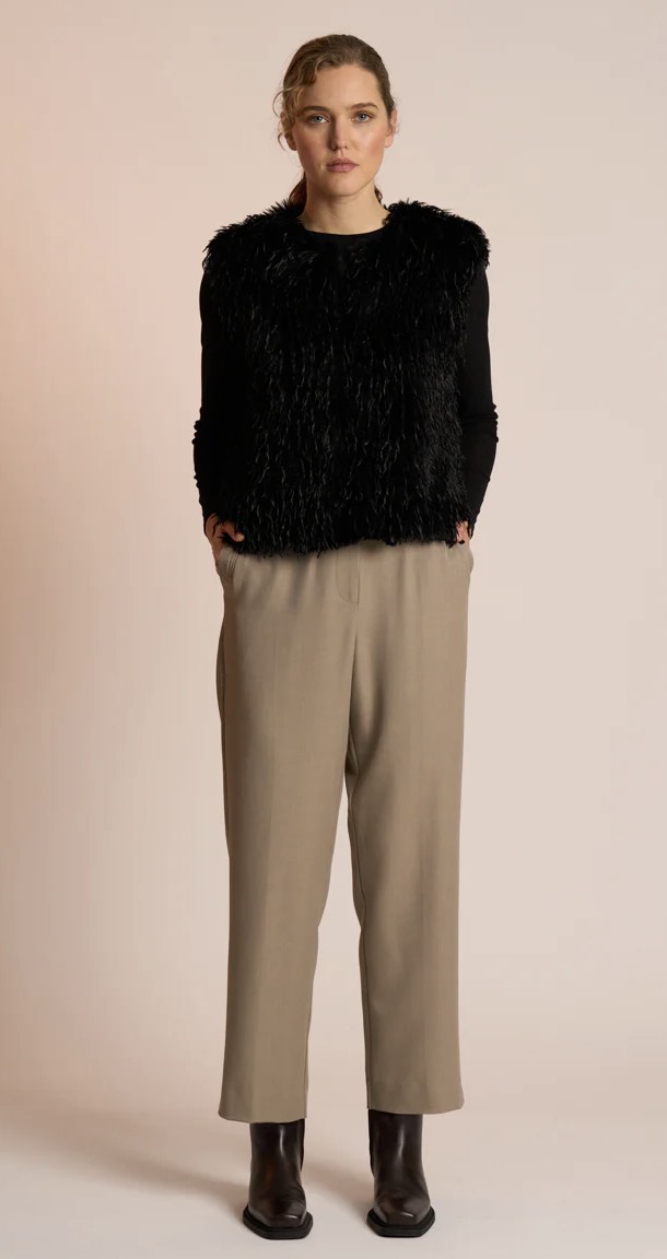 The Wilde Gilet by Neris channels your inner swan with its beautifully textural, feather-like fabrication. Wonderfully soft and undeniably statement-making, it’s the perfect layer to add depth and interest to any outfit. Fully lined for comfort, it fastens with a hook-and-eye clasp and features practical pockets. A standout piece for elevated winter styling.