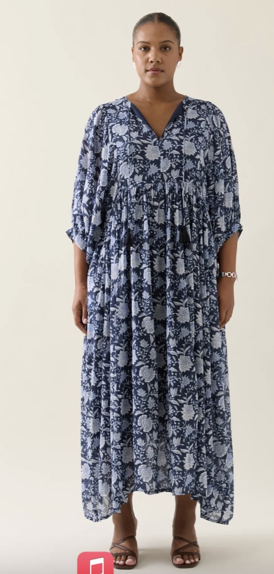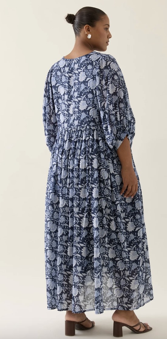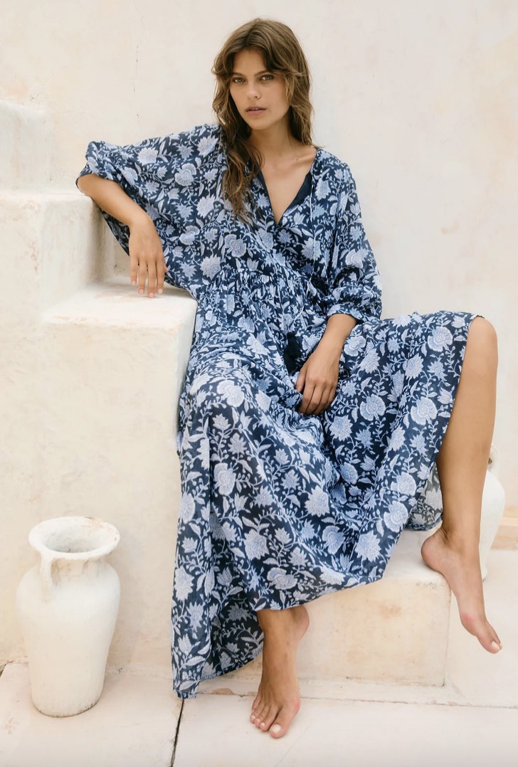 Made from lightweight, hand screen-printed cotton voile, the Wilma Maxi brings softness and ease to your summer wardrobe. Inspired by floral hand-block and featuring a V-neckline, tassel ties, gathered waist and full-length hem. Fully lined for comfort and ready to wear.