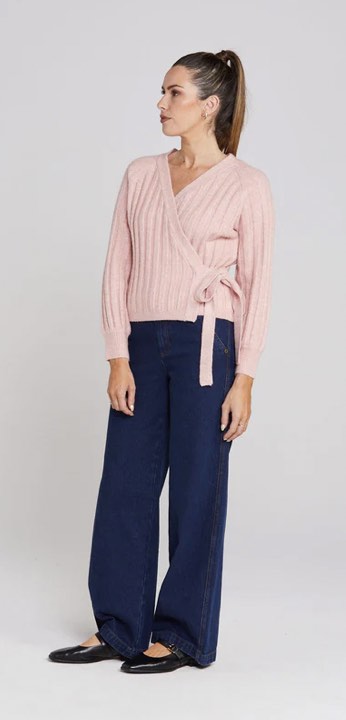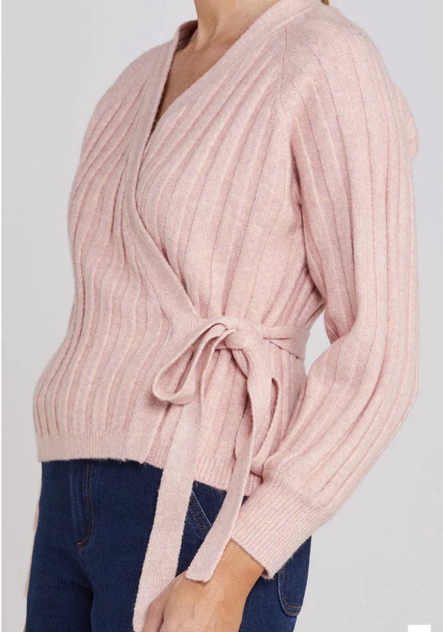 Wrap yourself in warmth and Wrapt Cardigan. This wrap cardigan, features a wide rib texture and a sprinkle of wool, it is as soft as a dream. With its playful ‘sprinkle’ colorway, a soft mixture of gentle pinky cream tones. So many sprinkles!